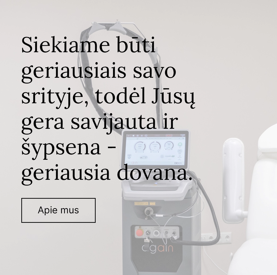 Stengiamės būti žingsniu priekyje ir išlaikyti aukščiausią kokybės standartą kiekvieną dieną. Nuolat investuojame į inovacijas — jos yra ir bus viena esminių mūsų klinikos privalumų.